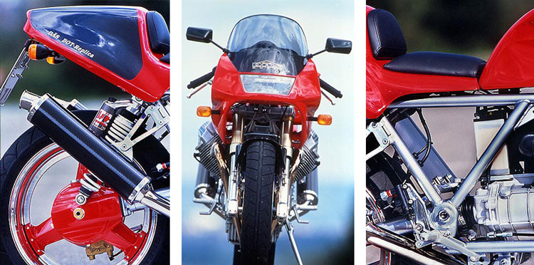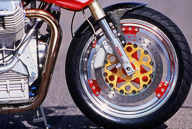 Die Minimalelektrik mit speziellen Bauteilen, eine programmierbare Zündanlage, sowie 41er FCR Keihin-Vergaser versorgen den auf 1106 ccm gebrachten Motor. Passend zum formschönen "Monza"-Tank wurden die Verkleidung und die Sitzbank entwickelt.