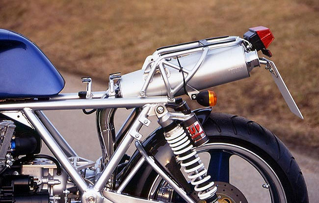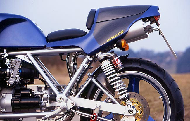Die "Marrano 1160" ist das Highlight unserer Le Mans-Umbauten. Das Ziel war es, eine pure Fahrmaschine mit einzigartiger Optik zu bauen. Dabei wurde großer Wert auf perfekte Verarbeitung und bestechende Detaillösungen gelegt. Der Hingucker schlechthin ist unsere exklusiv entwickelte Doppelrohrauspuffanlage mit unter dem Höcker plazierten Schalldämpfern. Dadurch wirkt das Motorrad extrem schlank und sportlich.