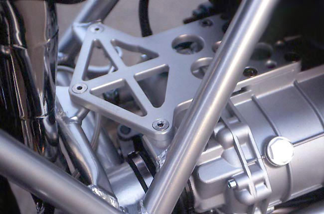 Mittels 17 Zoll PVM-Felgen, breiterer Schwinge mit Oberzug und längeren Federbeinen, sowie der Verwendung einer USD-Gabel in Verbindung mit speziell entwickelten Exzenterlagerbuchsen und entsprechenden CNC-gefrästen Gabelbrücken ist die Fahrwerksgeometrie auf mehr Handlichkeit getrimmt.